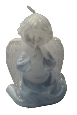 Lumanare de Craciun in forma de ingeras alb cu albastru